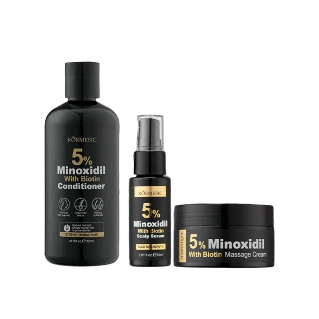 Kormesic 5% Minoxidil with Biotin Set – Conditioner, Serum & Hair Massage Cream